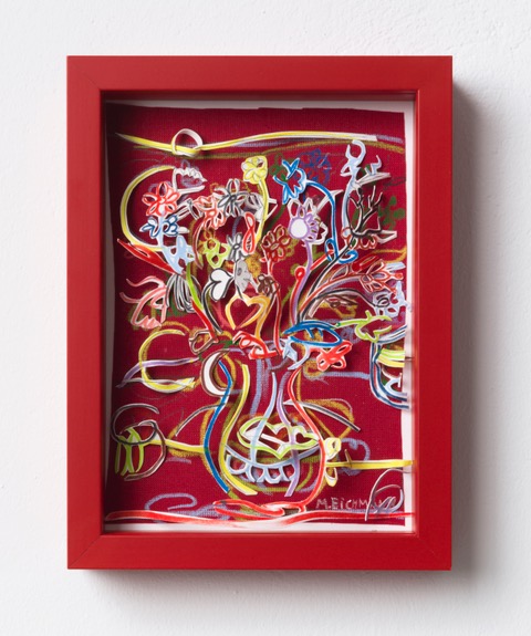 Marion Eichmann Blumen+Rot gerahmt mit Museumsglas, Buntstift, Leinen, Papier, Graphit, Ölpastell 2022 20x15x1,5 cm 980 € inkl. Rahmung